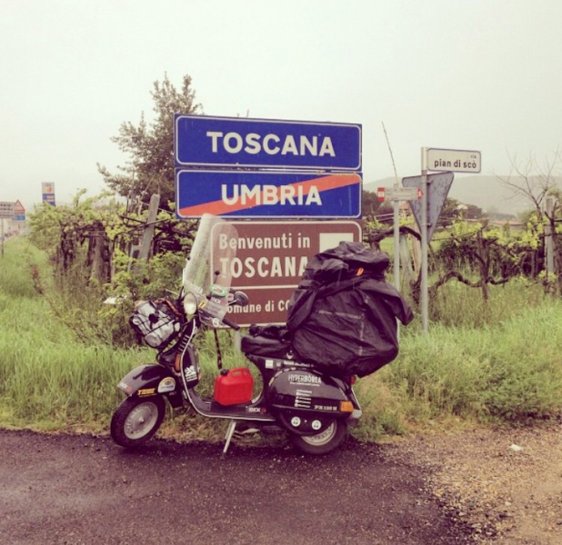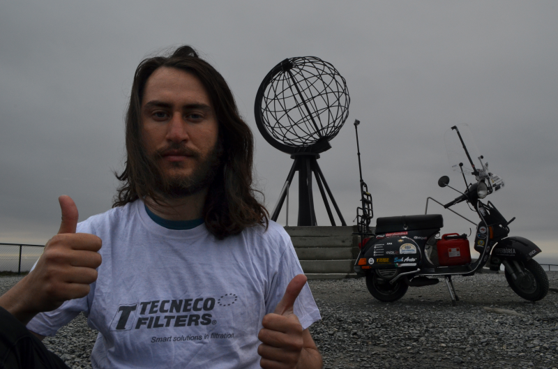 A quasi un anno di distanza l'avventura di Davide Leopizzi fa ancora sognare tutti noi. Era il pomeriggio di Venerdì 17 Aprile 2015, quando Davide in sella alla sua Vespa PX125 del 1982, partì per un avventuroso viaggio che lo avrebbe portato dal Capo di Leuca fino a CopoNord, concludendosi a Riga in Lettonia. Noi abbiamo seguito Davide passo, passo e oggi ci piace ricordare la sua avventura con questa foto.