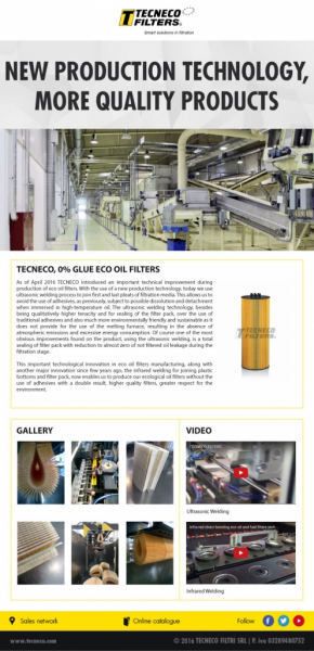 A partire dal mese di Aprile 2016 in TECNECO abbiamo indrodotto un importante miglioramento tecnico e tecnologico durante la produzione dei filtri olio ecologici. Approfondisci l'argomento leggendo la Newsletter.
