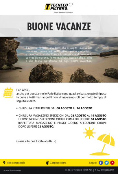 A partire dal mese di Aprile 2016 TECNECO promuove la campagna di comunicazione GARANZIA TECNECO SEMPLICE, IMMEDIATA, SICURA incentrata sulla nostra politica di garanzia prodotto. Tutti i nostri clienti riceverano, insieme agli ordini evasi, un display da banco con relativi flyers esplicativi sulla politica di garanzia prodotto TECNECO. GARANZIA SEMPLICE, IMMEDIATA, SICURA significa che qualsiasi danno provocato da un difetto o malfunzionamento di un filtro TECNECO verrà rimborsato immediatamente, una volta accertata la responsabilità in capo al prodotto stesso.