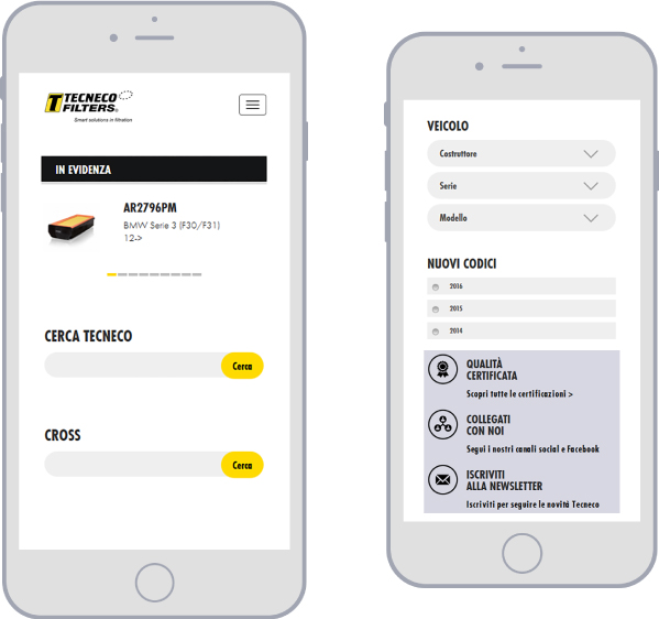 Con TECNECO puoi scegliere tra una gamma di filtri completa per tutti i tipi di veicoli, di qualità originale, nel rispetto degli standard richiesti dalle case automobilistiche ed in conformità con la normativa CE 461/2010.