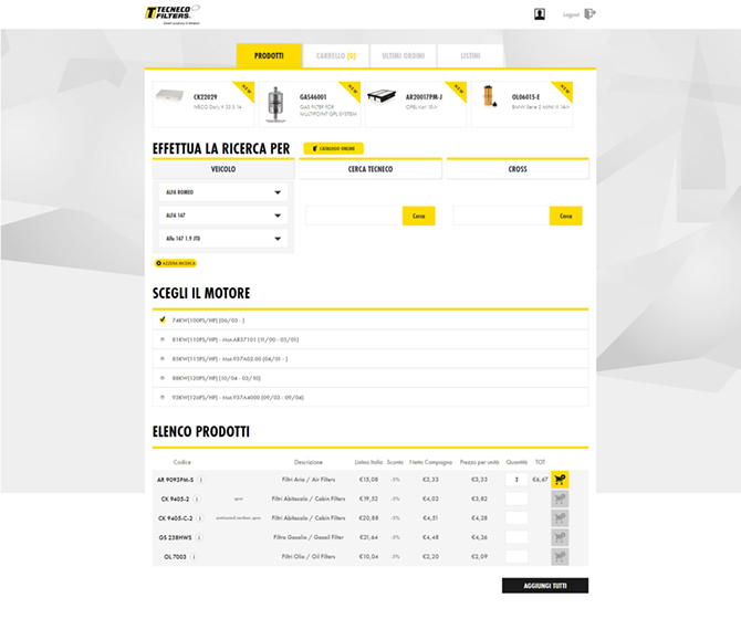 PROGRAMMA FILTRI ABITACOLO TECNECO