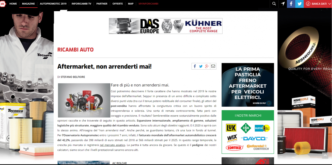 DA INFORICAMBI - L'AFTERMARKET FA IL PIENO NEL 2018