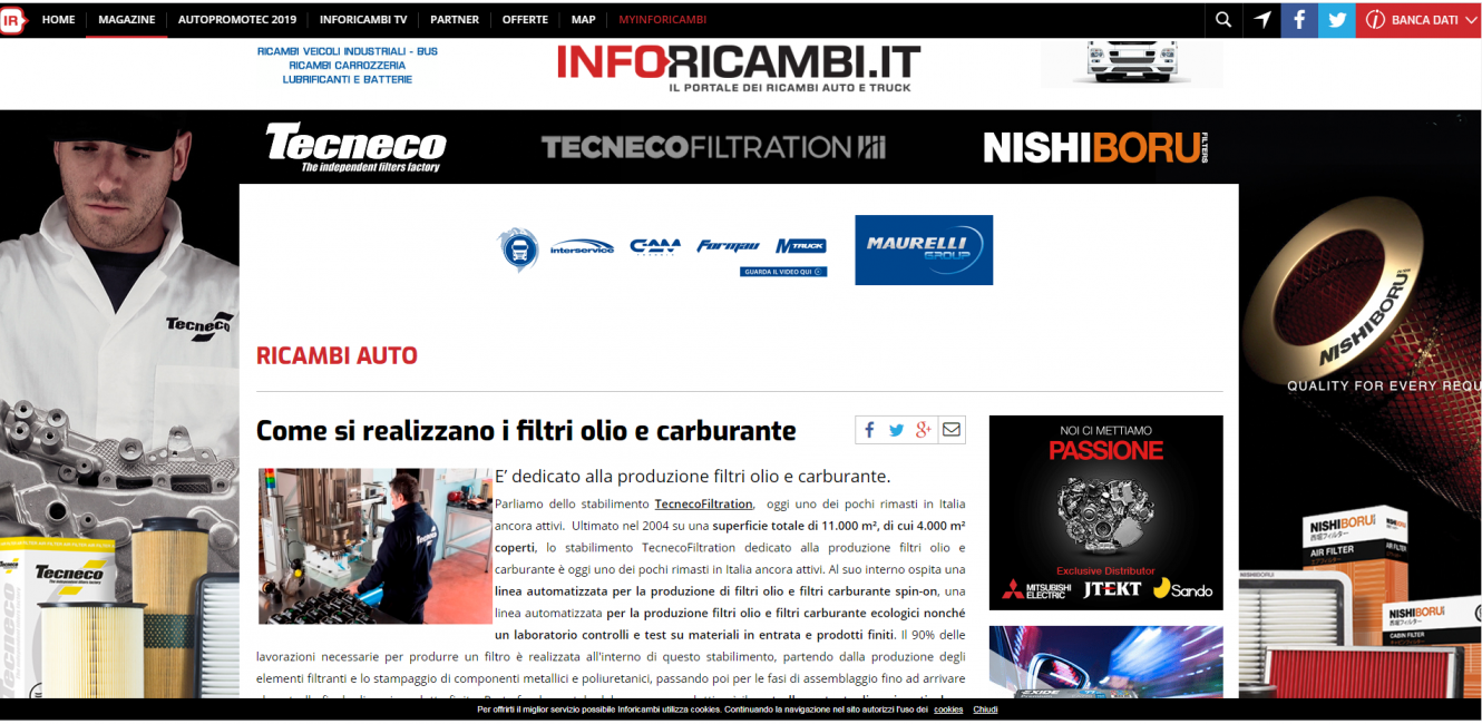 Su INFORICAMBI, un nuovo articolo parla di come si realizzano i filtri olio e carburante TECNECO all'interno del nostro stabilimento produttivo dedicato di Collepasso in provincia di Lecce.